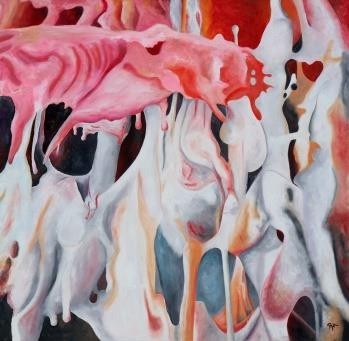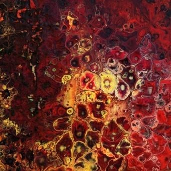Eine weitere Serie von Bildern wurde tatsächlich durch fließende Acrylfarben geschaffen, bekannt als Pouring Medium. Bei diesen Fließvorgängen spielt der Zufall eine wichtige Rolle, der Fließvorgang kann aber auch beeinflusst werden.