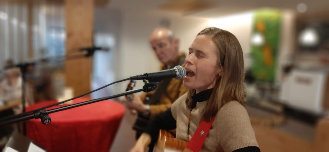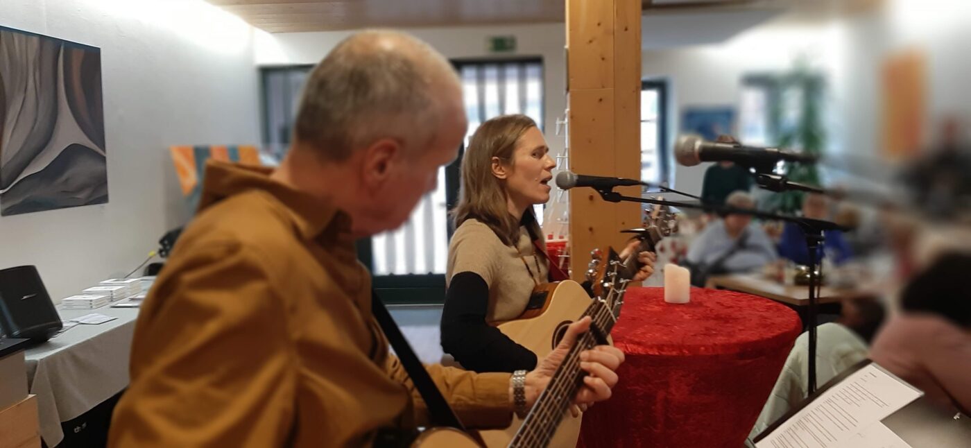 Die lebhaft vorgetragenen Lesungen von Johanna Ritter und Robin Hut, sowie die teils selbst getexteten und komponierten Musikstücke von KlangWindPoesie, fanden bei den Gästen großen Anklang und herzlichen Beifall.